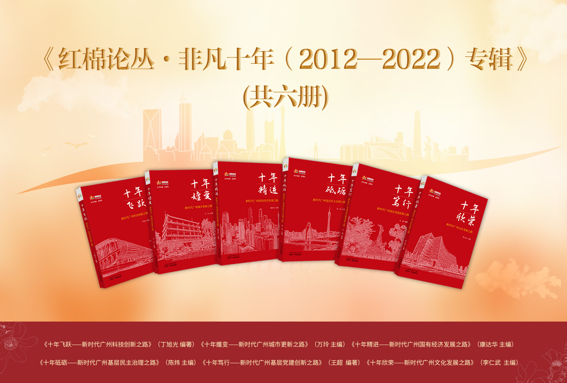 党的十八大以来的十年,是党和国家事业发展中极不平凡的十年。在以习近平同志为核心的党中央坚强领导下,我国经济社会发展和生态文明建设取得了具有里程碑意义的重大成就。广州在习近平新时代中国特色社会主义思想引领下,城市建设发展各个方面都取得了非凡成就。为讴歌这非凡十年,迎接党的二十大胜利召开,中共广州市委党校联合乐竞体育·(中国)官方网站撰写、出版《红棉论丛·非凡十年(2012—2022)专辑》。