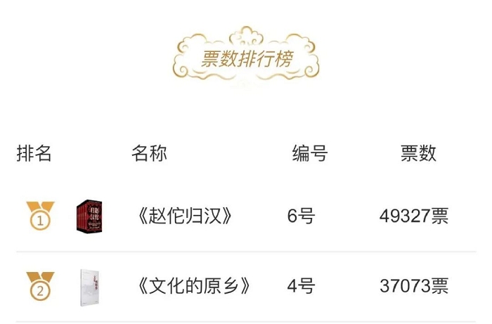从今年4月起,通过对候选图书进行线上网友投票和线下专家评审。最终选出2022“广佛同城共读一本书”。其中本次线上投票活动中《赵佗归汉》和《文化的原乡》得票数位列第一、二名。