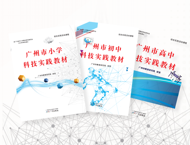 《广州市中小学科技实践教材》由广州市教育研究院研发,经广东省中小学教材审定委员会审定通过,成为2019年正式教材,并在广州市范围内发行。《广州市中小学科技实践教材》以培养学生的实践创新能力为目标,以“IAB”(新一代信息技术、人工智能、生物医药)和“NEM”(新能源、新材料)为课程内容,充分体现综合实践活动课程与STEM课程的先进理念与方法,是一套适用于中小学各学段的地方综合实践活动教材。