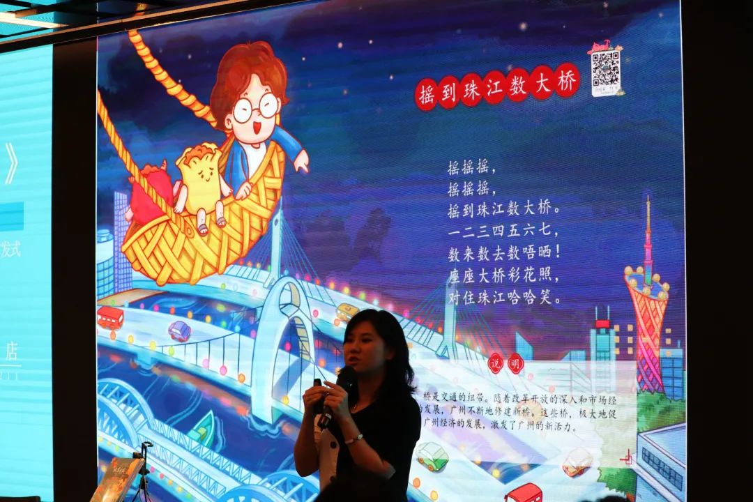 《新广府童谣》设计总监龚婷通过提问的方式与现场的小读者互动起来