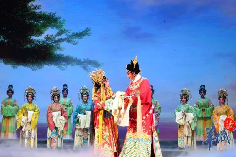 倪惠英(前左)、黎骏声(前右)等表演传统例戏《仙姬送子》